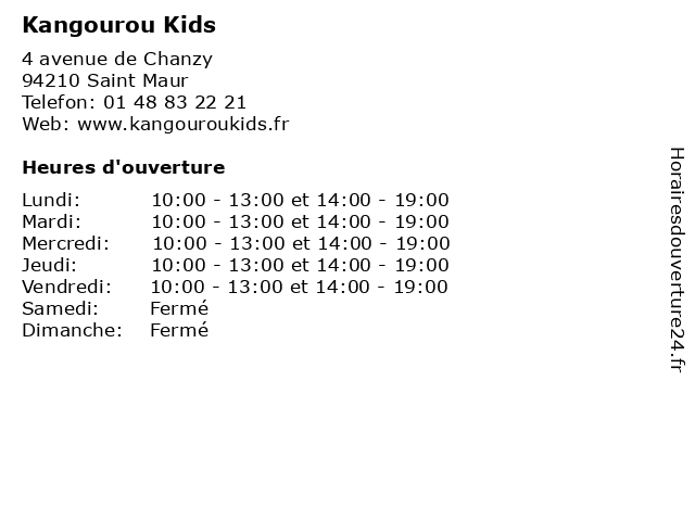 | Mercredi | 10:00-13:00 et 14:00-19:00 |