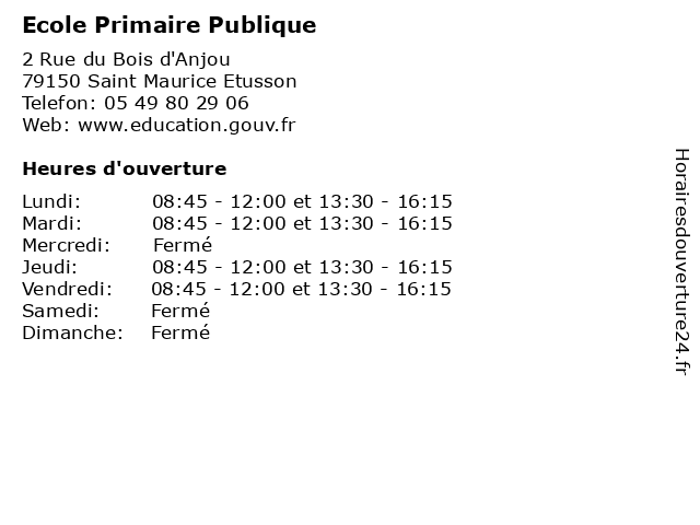 | Mardi | 08:45-12:00 et 13:30-16:15 |