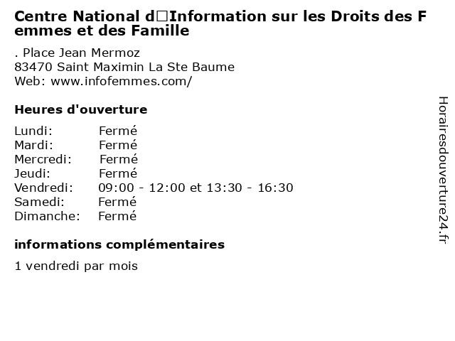 | Vendredi | 09:00-12:00 et 13:30-16:30 |
