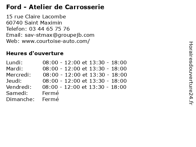 | Lundi | 08:00-12:00 et 13:30-18:00 |