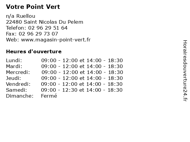 | Samedi | 09:00-12:30 et 14:00-18:30 |