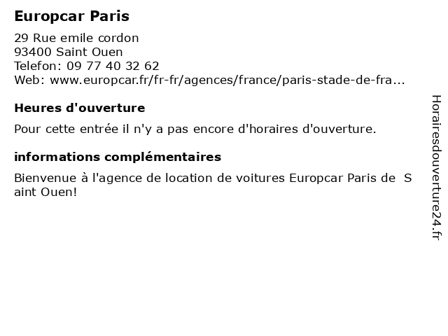 2 Europcar (Distance: 0,07 km) 29 rue emile cordon, 93400 Saint Ouen europcar, location de voitures, location de voitures de luxe, location de véhicules utilitaires, véhicules 3 B&B HOME Paris Mairie de Saint-Ouen (Distance: 0,43 km) 65 Rue Du Docteur Bauer, 93400 Saint-Ouen-sur-Seine b&b, de, home, hôtel pour séjours longue durée, mairie, ouen, paris, saint 4 Initial Hygiène Paris et IDF Nord (Distance: 0,44 km) 39/53 Campus Pleyad, 93200 Saint Denis et, hygiène, idf, initial, nord, paris 5 TRIBE Paris Saint Ouen (Distance: 0,45 km) 33 Boulevard Jean Jaurès, 93400 Saint Ouen ouen, paris, saint, tribe 6 Une Pièce en Plus Saint-Ouen, Paris (Distance: 0,52 km) 45/57 Avenue Michelet, 93400 Saint-Ouen en, ouen, paris, pièce, plus, saint, une |