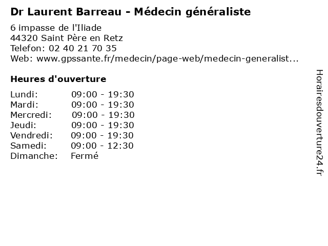| Lundi | 09:00-19:30 |