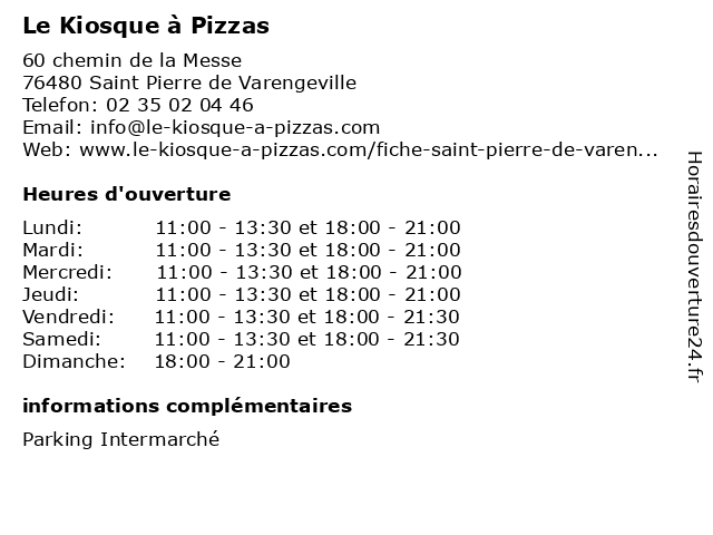 | Mercredi | 11:00-13:30 et 18:00-21:00 |