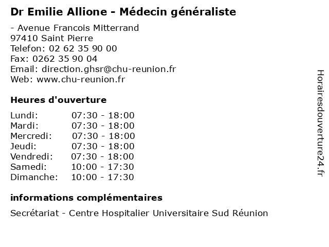 1 Dr Emilie Barrier - Anesthésiste (Distance: 0,00 km) - Avenue Francois Mitterrand, 97410 Saint Pierre anesthésiste, barrier, consultation, docteur, dr, emilie, med, médecin, traitement 2 Dr Emilie Bach - Psychiatre (Distance: 0,00 km) - Avenue Francois Mitterrand, 97410 Saint Pierre bach, consultation, docteur, dr, emilie, med, médecin, psychiatre, traitement 4 Dr Emilie Morice - Pharmacien hospitalier (Distance: 28,21 km) 29 Avenue Pierre Mendès France, 76290 Montivilliers cachet, centre, dr, emilie, havre, hospitalier, hôpital, jacques, le, medicament, monod, montivilliers, morice, pharmacie, pharmacien 5 Dr Emilie Billioud - Gastro-entérologue hépatologue (Distance: 28,21 km) 29 Avenue Pierre Mendès France, 76290 Montivilliers billioud, cancer, cancérologie, centre, dr, emilie, entérologie, entérologue, gastro, gastroentérologue, havre, hospitalier, hépatologue, hôpital, jacques, le, monod, montivilliers 6 Emilie Cannesan - Sage-femme (Distance: 28,92 km) 2 Rue Elsa Triolet, 76700 Gonfreville-l'Orcher cannesan, emilie, femme, medical, sage, sagefemme |