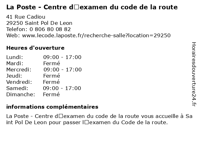 Termes de recherche pour La Poste - Centre d’examen du code de la route:poste, la, du, de, route, centre, code, d’examen, centre d'évaluation scolaire, école technique |