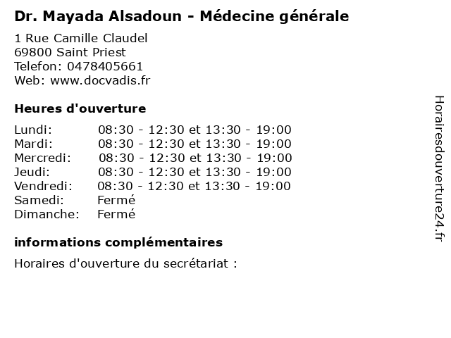 | Mercredi | 08:30-12:30 et 13:30-19:00 |