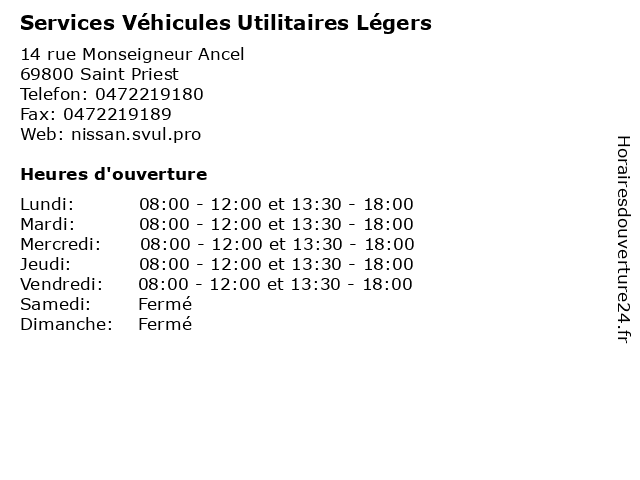 | Lundi | 08:00-12:00 et 13:30-18:00 |