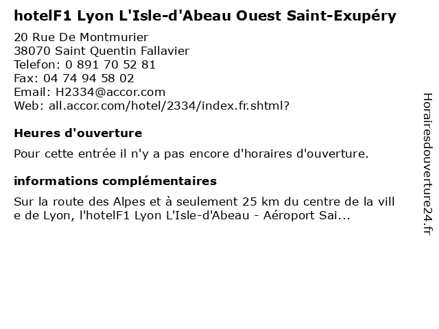 | Appeler hotelF1 Lyon L'Isle-d'Abeau Ouest Saint-Exupéry | |