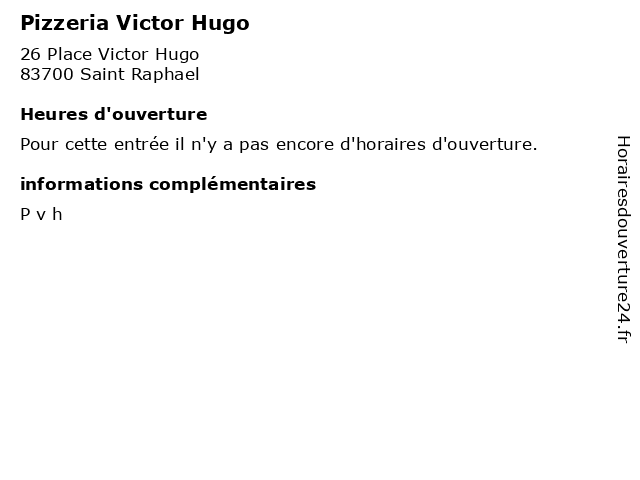 1 UTILE SAINT-RAPHAËL Victor Hugo (Distance: 0,11 km) 78 Rue Victor Hugo, 83700 Saint-Raphaël hugo, raphaël, saint, utile, victor 2 Onepark / Victor Hugo Parking (Distance: 0,35 km) 90 Avenue Victor Hugo, 83700 Saint-Raphaël hugo, onepark, parking, services, victor 3 Onepark / Victor Hugo Parking (Distance: 0,35 km) 90 Avenue Victor Hugo, 83700 Saint-Raphaël hugo, onepark, parking, services, victor 4 Diboune Hugo Ali Maurice (Distance: 3,30 km) Les Hauts De Boulouris, 83700 Saint Raphael ali, diboune, hugo, maurice, restaurants 5 Mac a Dan 83 pizzeria (Distance: 13,74 km) 21 Rue De La Pompe, 83600 Bagnols-en-Forêt 83, dan, mac, pizzeria, restaurants 6 Pizzeria Zio (Distance: 14,41 km) 39 Av Du General Touzet Du Vigier, 83120 Ste Maxime juve, pizzeria, restaurants, zio |
