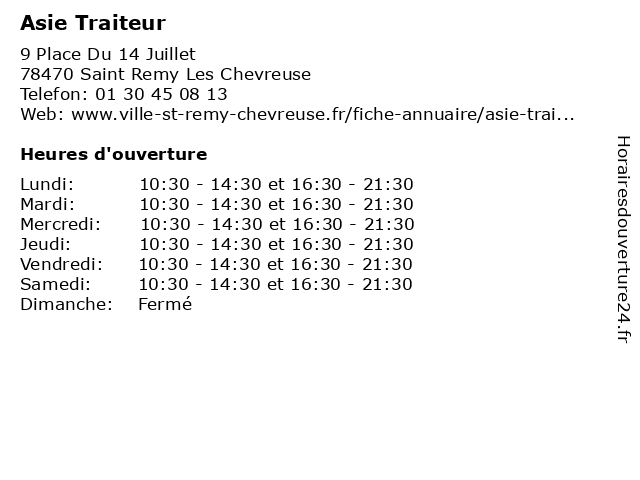 | Mardi | 10:30-14:30 et 16:30-21:30 |