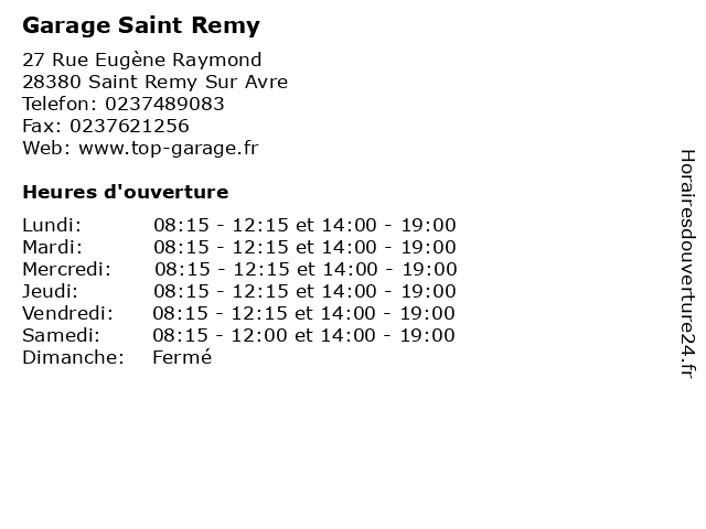 | Samedi | 08:15-12:00 et 14:00-19:00 |