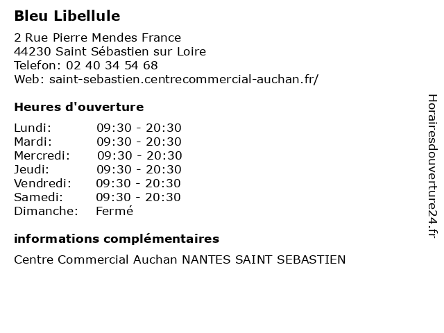 1 Bleu Libellule (Distance: 0,44 km) - Rue Pierre Mendès France, 44230 Saint-Sébastien-sur-Loire bleu, cheveux, coiffure, corps, esthétique, libellule, produits beauté, produits professionnels, visage 2 Bleu Libellule (Distance: 1,72 km) Route de Clisson, 44115 Basse-Goulaine bleu, cheveux, coiffure, corps, esthétique, libellule, produits beauté, produits professionnels, visage 3 Bleu Libellule (Distance: 10,85 km) Place Magellan, 44800 Saint-Herblain bleu, cheveux, coiffure, corps, esthétique, libellule, produits beauté, produits professionnels, visage 4 Eléphant Bleu (Horaires d'ouverture) (Distance: 1,94 km) - Rue de l'Atlantique, 44115 Basse Goulaine accessoires, bleu, d'ouverture, eléphant, eléphant bleu, horaires, motos, voitures 5 Eléphant Bleu (Horaires de Présence) (Distance: 1,94 km) - Rue de l'Atlantique, 44115 Basse Goulaine accessoires, bleu, de, eléphant, eléphant bleu, horaires, motos, présence, voitures 6 France Bleu Loire Océan (Distance: 5,37 km) 2Bis Quai François Mitterrand, 44200 Nantes bleu, france, loire, loire océan, nantes, océan, radio, station |