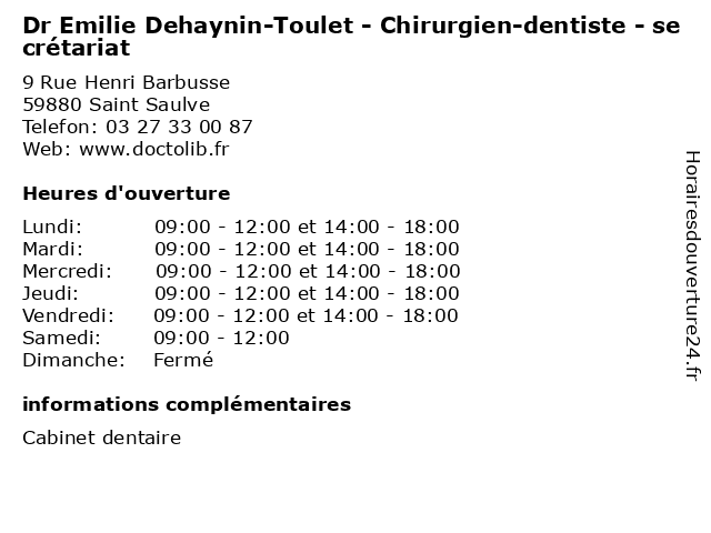 Lundi | 09:00-12:00 et 14:00-18:00 |