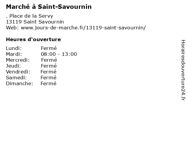 1 Marché à Cadolive (Distance: 1,89 km) . Place de la mairie, 13950 Cadolive cadolive, frutas, hortalizas, marché, mercado, verduras 2 Marché à Gréasque (Distance: 3,02 km) . Cours Ferrer, 13850 Gréasque frutas, gréasque, hortalizas, marché, mercado, verduras 3 Onepark / Marché Parking (Distance: 13,01 km) 35 Avenue Gabriel Peri, 13400 Aubagne marché, onepark, parking, services 4 Marché à Maillane (Distance: 13,64 km) . Centre ville, 13910 Maillane frutas, hortalizas, maillane, marché, mercado, verduras 5 Ô Marché d'Asie (Distance: 14,70 km) - avenue Plan de Campagne, 13170 Les Pennes-Mirabeau alimentation, asiatique, d'asie, marché, épicerie 6 Marché Chartreux à Marseille 4e (Distance: 14,87 km) . Place Edmond Audran, 13004 Marseille 4e, chartreux, frutas, hortalizas, marché, marseille, mercado, verduras |