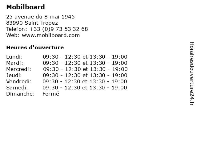 | Lundi | 09:30-12:30 et 13:30-19:00 |