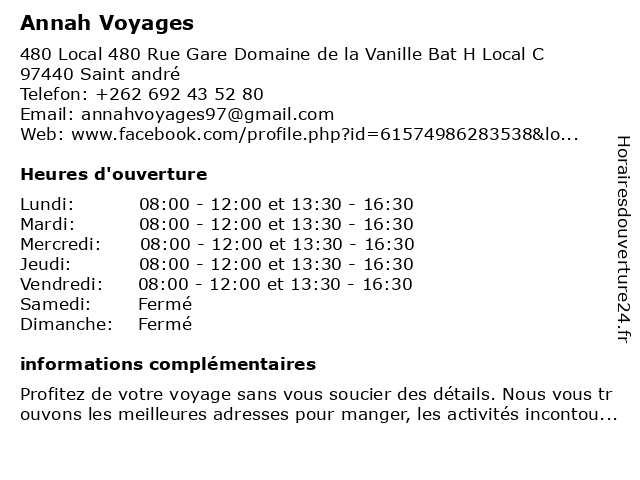 Lundi | 08:00-12:00 et 13:30-16:30 |