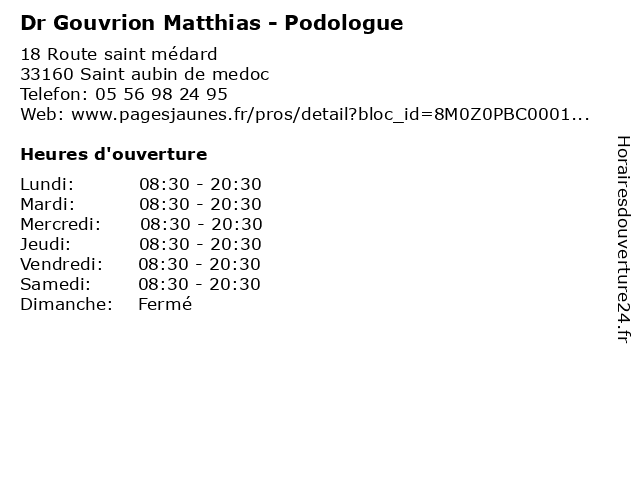 Termes de recherche pour Dr Gouvrion Matthias - Podologue:matthias, docteur, dr, podologue, gouvrion, saint aubin de médoc |