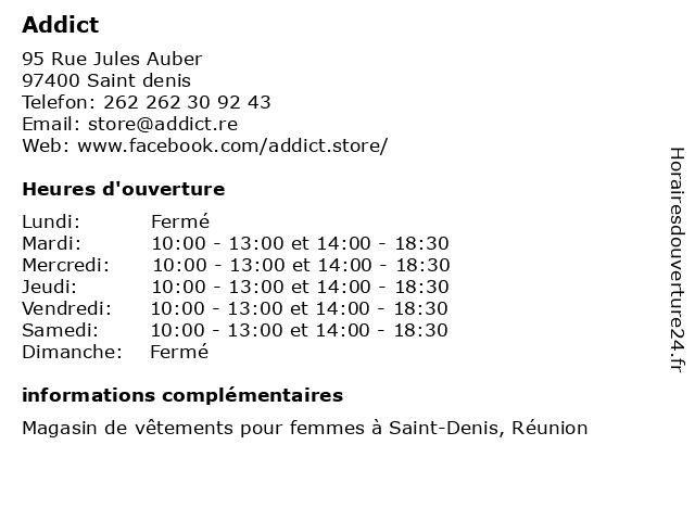 | Samedi | 10:00-13:00 et 14:00-18:30 |