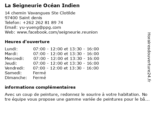| Lundi | 07:00-12:00 et 13:30-16:00 |