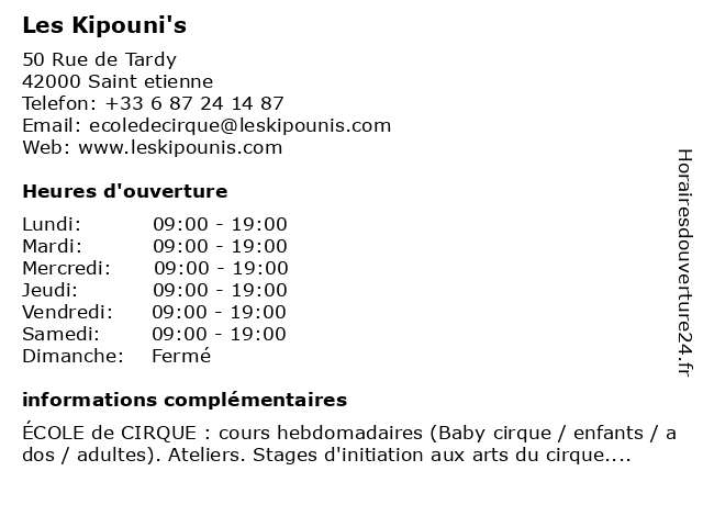 Horaires d'ouverture |