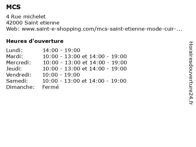 | Samedi | 10:00-13:00 et 14:00-19:00 |