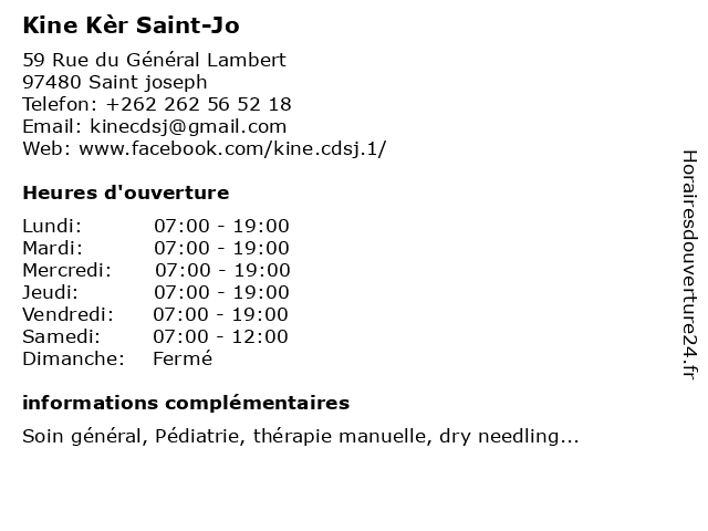 1 Saint Jo Piercing (Distance: 6,41 km) 24 Saint Joseph de Souville, 97480 Saint-Joseph jo, microdermals, piercing, saint, studio, tattoo 2 Jo Elect (Distance: 15,55 km) 9 allée des Hirondelles, 97410 Saint-Pierre elect, electricité, installation, jo, rénovation, travaux 3 Anne Laure Celenza - Masseur-kinésithérapeute (Distance: 0,62 km) 65 Rue du Maréchal Leclerc Saint-Joseph, 97480 Saint-Joseph anne, celenza, docteur, kine, kinesitherapeute, kinésithérapeute, laure, masseur 4 Paul Lemoal - Masseur-kinésithérapeute (Distance: 54,36 km) 11 Rue de la Guyane Saint-Denis, 97400 Saint-Denis docteur, kine, kinesitherapeute, kinésithérapeute, lemoal, masseur, paul 5 Nicolas Guiot - Masseur-kinésithérapeute (Distance: 54,36 km) 11 Rue De La Guyane, 97490 Saint Denis docteur, guiot, kine, kinesitherapeute, kinésithérapeute, masseur, nicolas 6 Cécile Diemer - Masseur-kinésithérapeute (Distance: 54,36 km) 11 Rue De La Guyane, 97490 Saint Denis cecile, cécile, diemer, docteur, kine, kinesitherapeute, kinésithérapeute, masseur |