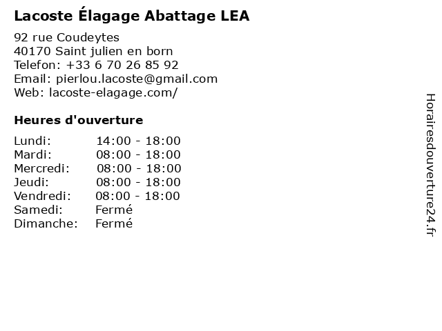 1 Everblue Lacoste Et Fils (Distance: 7,35 km) 1572 Route des Lacs, 40170 Lit-et-Mixe et, everblue, fils, lacoste 2 Everblue Lacoste et Fils (Sarl) (Distance: 14,54 km) 36 Avenue de Bayonne, 40200 Mimizan et, everblue, fils, lacoste, magasin, piscine, piscine intérieure, piscine miroir, rénovation, sarl 3 Citroën - Lacoste Automobiles (Distance: 35,84 km) 350 Rue Des Compagnons, 40600 Biscarrosse automobiles, biscarrosse, citroen, citroën, lacoste, neuves, occasion, vente, voitures 4 Etablissements Lacoste Et Fils (Distance: 42,12 km) 730 Place De La Fontaine Chaude, 40100 Dax boucheries, etablissements, fils, lacoste, poissonneries 5 Lea Mitteau - Masseur-kinésithérapeute (Distance: 42,74 km) 81 Rue Jean le Bon, 40100 Dax docteur, kine, kinesitherapeute, kinésithérapeute, lea, masseur, mitteau 6 Lea Berniolles - Diététicienne (Distance: 44,31 km) 1 Route de la Parcelle, 40100 Dax aliment, berniolles, dieticien, diététicienne, lea, medecin, nutrition |