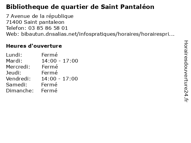 | Samedi | Fermé |