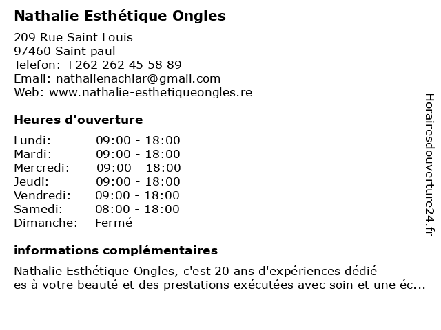 1 Au Bout Des Ongles (Distance: 7,43 km) - ZAC Mascareignes, 97420 Le Port au, beauté, bout, des, manucure, onglerie, ongles, vernis 2 Nathalie David - Sage-femme (Distance: 18,72 km) 199 A Rue Du General Lambert, 97424 Saint-Leu david, femme, nathalie, sage, sagefemme, sante 4 Body Minute (Distance: 2,67 km) 4 Rue Jules Thirel, 97460 Saint-Paul beauté, body, body'minute, cheveux, corps, minute, ongles, soins 5 Body Minute (Distance: 22,14 km) 43 Boulevard de la Providence, 97400 Saint-Denis beauté, body, body'minute, cheveux, corps, minute, ongles, soins 6 Mon Atelier Beauté (Distance: 22,18 km) 33 Rue Malartic Résidence, 97400 Saint-Denis atelier, beaute, beauté, institut, mon, ongles, soins |