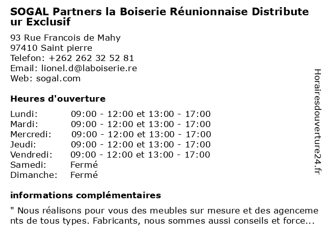 Termes de recherche pour SOGAL Partners la Boiserie Réunionnaise Distributeur Exclusif:la, distributeur, exclusif, réunionnaise, partners, boiserie, sogal |