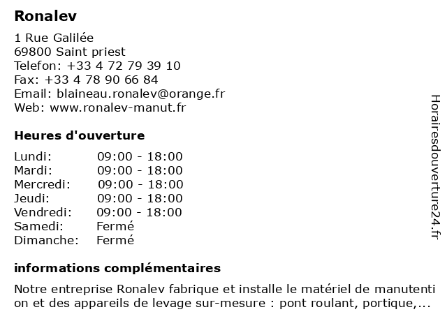 Notre entreprise Ronalev fabrique et installe le matériel de manutention et des appareils de levage sur-mesure : pont roulant, portique, potence, palan .... Notre bureau de contrôle et de vérifi...