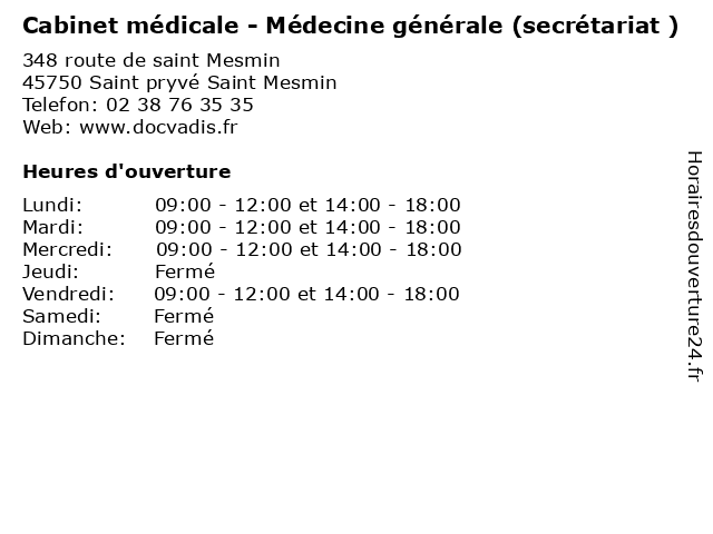 | Mercredi | 09:00-12:00 et 14:00-18:00 |