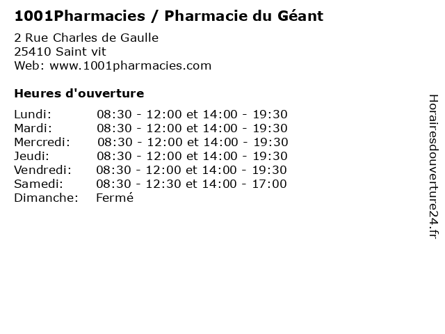 | Lundi | 08:30-12:00 et 14:00-19:30 |