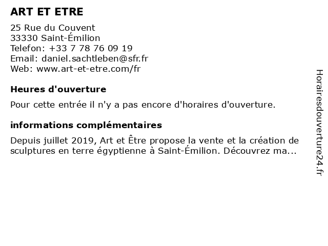 1 ART ET ETRE (Distance: 0,00 km) 25 Rue du Couvent, 33330 Saint-Émilion art, création sculpteur, et, etre, exposition sculptures, sculpteur, sculptures, sculptures terre égyptienne 2 De l'Art Et Du Cochon (Distance: 2,59 km) 2 Lieu Dit Thillet, 33330 St Christophe Des Bardes art, cochon, restaurants 3 Cecam Art et Musique (Distance: 6,76 km) 18 Avenue de Verdun, 33500 Libourne art, business, cecam, et, guitar, instruments, music, musique, piano, store 4 Florence Louis, Psychothérapie et art-thérapie (Distance: 7,04 km) 20 Rue Jules Steeg, 33500 Libourne art, et, florence, louis, psychanalyste, psychologue, psychothérapeute, psychothérapie, thérapie 5 Restaurant L'Art des Mets (Distance: 7,07 km) 20 Place Decazes, 33500 Libourne art, des, l'art, mets, poisson, restaurant, restauration 6 |