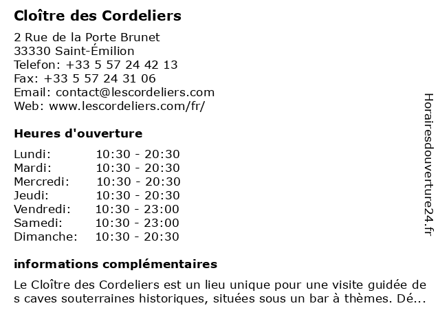 1 SCE DES VIGNOBLES JOINAUD BORDE (Distance: 0,08 km) 10 Rue Guadet, 33330 Saint Emilion borde, des, joinaud, sce, vignobles 2 Hotel Au Logis des Remparts (Distance: 0,09 km) 18 Rue Guadet, 33330 Saint-Émilion au, bar, des, hotel, logis, remparts, restaurant, service 3 L'Onglerie® (Distance: 5,14 km) 102 Avenue du Général de Gaulle, 33500 Libourne beaute, beaute des pieds, l'onglerie®, salons 4 Le coin des copains (Distance: 32,33 km) 1 Quai de Bacalan, 33300 Bordeaux coin, copains, des, le, loisir., restaurant 5 La Trattoria Des Quais (Distance: 32,57 km) 15-19 Quai des Chartrons, 33300 Bordeaux cafe, chaussures, des, enfants, homme, la, mode femme, parfumeries, quais, restaurant, servicies, sport, trattoria 6 Comptoir des Cotonniers (Distance: 32,63 km) . Avenue Quarante Journaux, 33300 Bordeaux beaute, cafe, chausures, comptoir, cotonniers, des, enfants, mode femmes, mode hommes, restaurant, sport |