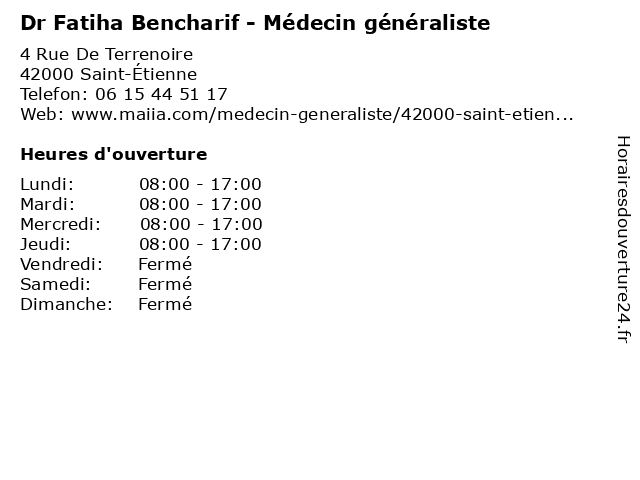 1 Maître Fatiha Larabi-Hadi - Avocat (Distance: 2,25 km) 10 rue Jacques Desgeorges, 42000 Saint-Etienne avocat, fatiha, hadi, justice, larabi, lois, maitre, maître 2 Dr Fatiha Rhazdis - Médecin généraliste (Distance: 2,32 km) 47 Rue Charles de Gaulle, 42000 Saint-Étienne consultation, docteur, dr, fatiha, générale, généraliste, médecin, médecine, médecins, rendez, rhazdis, santé, sur, vous 3 Dr Liazid Bencharif - Spécialiste en médecine interne (Distance: 34,81 km) - Avenue des Monts du Soir, 42600 Montbrison bencharif, consultation, docteur, dr, en, interne, liazid, med, médecin, médecine, spécialiste, traitement 4 Dr Liazid Bencharif - Spécialiste en médecine interne (Distance: 38,11 km) 26 rue Camille Pariat, 42110 Feurs bencharif, consultation, docteur, dr, en, interne, liazid, med, médecin, médecine, spécialiste, traitement 5 Dr Fatiha Dabbaghi Choukri - Pédiatre (Distance: 44,26 km) 31 Avenue de Haute Roche, 69310 Pierre-Bénite choukri, dabbaghi, dr, espace, fatiha, médicale, néonatologie, pédiatre, pédiatrie, santé, scarlatine, vaccination, varicelle 6 Dr Fatiha Achache-Rachet - Cardiologue (Distance: 48,85 km) 70 Rue Jaboulay, 69007 Lyon achache, cardiologue, dr, fatiha, médecin, médecine, médical, pharmaceutique, rachet, secretariat, sectretariat, traitement |