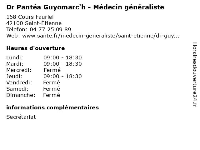 1 Dr Amandine Mazenod - Médecin généraliste (Distance: 0,08 km) 115 Cours Fauriel, 42100 Saint-Étienne amandine, consultation, docteur, dr, généraliste, mazenod, med, médecin, traitement 2 Dr Dominique Compain - Médecin généraliste (Distance: 0,09 km) 23 bis Rue Emile Clermont, 42100 Saint-Étienne compain, consultation, docteur, dominique, dr, généraliste, med, médecin, traitement 3 Dr Sandrine Maniere - Médecin généraliste (Distance: 0,12 km) 105 Cours Fauriel, 42100 Saint-Étienne consultation, docteur, dr, généraliste, maniere, med, médecin, sandrine, traitement 4 Dr Hélène Flandin - Médecin généraliste (Distance: 0,41 km) 154 bis Cours Fauriel, 42100 Saint-Étienne consultation, docteur, dr, flandin, généraliste, hélène, med, médecin, traitement 5 Dr Éric Faure - Médecin généraliste (Distance: 0,88 km) 45 Boulevard Alexandre de Fraissinette, 42100 Saint-Étienne consultation, docteur, dr, faure, généraliste, med, médecin, traitement, éric 6 Dr Émilie Fropier - Médecin généraliste (Distance: 0,92 km) 3 Place de l'Abbaye, 42100 Saint-Étienne consultation, docteur, dr, fropier, généraliste, med, médecin, traitement, émilie |