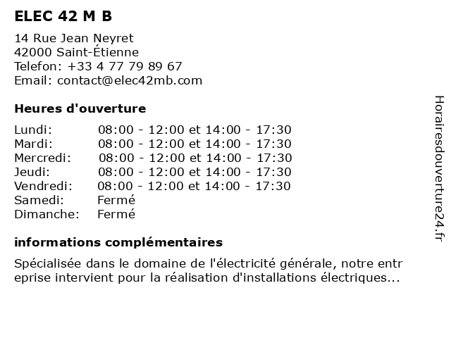 | Lundi | 08:00-12:00 et 14:00-17:30 |
