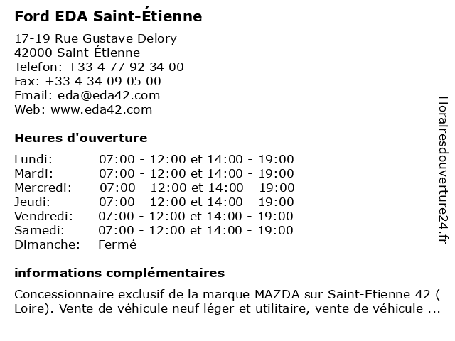 1 Mazda EDA Saint-Étienne (Distance: 0,04 km) 19 Rue Gustave Delory, 42000 Saint-Étienne eda, mazda, saint, étienne 2 Ford - EDA - Véhicules Neufs (Distance: 0,07 km) 19 Rue Gustave Delory, 42000 Saint-Étienne eda, entretien, ford, neufs, révisions, services d'automobiles, vidanges, véhicules 3 Ford - EDA - Véhicules d'Occasion (Distance: 0,07 km) 19 Rue Gustave Delory, 42000 Saint-Étienne d'occasion, eda, entretien, ford, révisions, services d'automobiles, vidanges, véhicules 4 Ford - EDA - Ford Entreprise (Distance: 0,07 km) 19 Rue Gustave Delory, 42000 Saint-Étienne eda, entreprise, entretien, ford, révisions, services d'automobiles, vidanges 5 Ford - EDA - Financement (Distance: 0,07 km) 19 Rue Gustave Delory, 42000 Saint-Étienne eda, entretien, financement, ford, révisions, services d'automobiles, vidanges 6 Ford - EDA - Atelier Mécanique (Distance: 0,07 km) 19 Rue Gustave Delory, 42000 Saint-Étienne atelier, eda, entretien, ford, mécanique, révisions, services d'automobiles, vidanges |