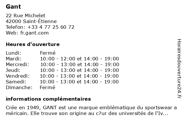 | Samedi | 10:00-13:00 et 14:00-19:00 |