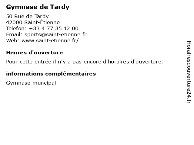 1 École Maternelle Publique Tardy (Distance: 0,16 km) 2 Boulevard Robert Maurice, 42100 Saint-Etienne cours, education, maternelle, publique, services, tardy, école 2 École Elémentaire Publique Tardy (Distance: 0,23 km) 2 Rue des Ferrandiniers, 42100 Saint-Étienne cours, education, elémentaire, publique, services, tardy, école, élémentaire 3 Gymnase Claude Fauriel (Distance: 1,34 km) 15 Rue Etienne Mimard, 42000 Saint-Étienne claude, fauriel, gymnase 4 Gymnase de la Vivaraize (Distance: 1,34 km) 1 Rue Arsac, 42000 Saint-Étienne de, gymnase, la, vivaraize 5 Gymnase Jean Gachet (Distance: 1,55 km) 12 Rue Benoît Malon, 42000 Saint-Étienne gachet, gymnase, jean 6 Gymnase de la Rivière (Distance: 1,93 km) 13 Rue Berthelot, 42100 Saint-Étienne de, gymnase, la, rivière |