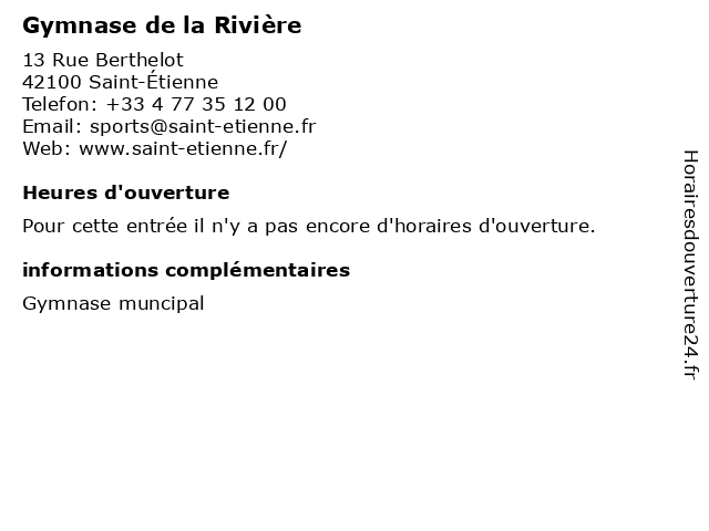 1 École Maternelle Publique Rivière (Distance: 0,09 km) 44 Rue Parmentier, 42100 Saint-Etienne cours, education, maternelle, publique, rivière, services, école 2 Low Cost Coiffure la Rivière (Distance: 0,18 km) 38 Avenue de Rochetaille, 42100 Saint-Étienne beauté, cheveux, coiffeur, coiffure, cost, coupes, la, low, rivière, salon de coiffure, service 3 École Elémentaire Publique Dora Rivière (Distance: 0,27 km) 31 Rue Amouroux, 42100 Saint-Étienne cours, dora, education, elémentaire, publique, rivière, services, école, élémentaire 4 Structure petite enfance la Rivière (Distance: 0,28 km) 28 Rue des forges, 42100 Saint-Étienne caregivers houses, child care, enfance, family home, home care, kindergartens, la, micro-nurseries, parental home, petite, rivière, structure 5 Centre social La Rivière Marie-Helene Januel (Distance: 0,29 km) 28 Rue Des Forges, 42100 ST ETIENNE centre, helene, januel, la, marie, rivière, social 6 Gymnase de la Vivaraize (Distance: 0,95 km) 1 Rue Arsac, 42000 Saint-Étienne de, gymnase, la, vivaraize |