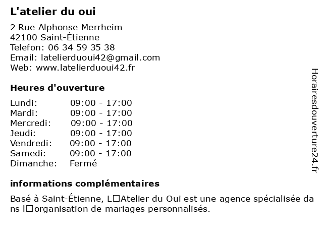 1 L'Atelier de l'Optique (Distance: 0,37 km) 58 boulevard Alexandre de Fraissinette, 42100 Saint-Etienne atelier, de, entretien, l'atelier, l'optique, lentilles, lunettes, opticien, solaire, vue 2 Yamaha Motors (Atelier) (Distance: 0,95 km) 9 Rue de Dunkerque, 42100 Saint Etienne atelier, cyclos, maxi-scooter, motors, motos, scooter, yamaha 4 Atelier Thiollière (Distance: 1,33 km) 3 Rue Marcellin Champagnat, 42100 Saint-Étienne atelier, thiollière 5 Mathais Jean-Luc - Atelier d'architecture et d'urbanisme (Distance: 1,34 km) 77 rue Horace Vernet, 42100 Saint Étienne amenagement, architecte, architecture, atelier, d'architecture, d'urbanisme, décoration, et, interieur, jean, luc, maison, mathais, paysagiste 6 L'Atelier Provencal (Distance: 1,62 km) 63 de Terrenoire, 42100 Saint-Etienne fleuriste, fleurs, l'atelier, provencal |