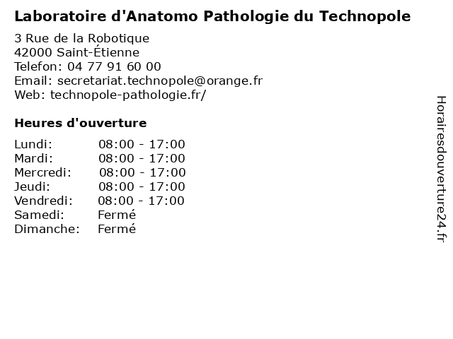 1 Dr Sandrine Sorel - Anatomo-cyto-pathologiste (Distance: 0,02 km) 3 Rue de la Robotique, 42000 Saint-Étienne anatomo, consultation, cyto, docteur, dr, med, médecin, pathologiste, sandrine, sorel, traitement 2 Dr Marianne Buyck-Mabrut - Anatomo-cyto-pathologiste (Distance: 0,02 km) 3 Rue de la Robotique, 42000 Saint-Étienne anatomo, buyck, consultation, cyto, docteur, dr, mabrut, marianne, med, médecin, pathologiste, traitement 3 Laboratoire de Biologie Médicale Anabioqual (Distance: 0,96 km) 105-107 Rue Bergson, 42000 Saint-Etienne anabioqual, biologie, bureau, consultation, de, dr, laboratoire, maladie, med, médecin, médecine, médicale, pratique, thérapie, traitement 5 Anabio Bergson Laboratoire d'Analyses de Biologie Médicale (Distance: 1,41 km) 1015 Bergson, 42000 Saint-Etienne anabio, analyses, bergson, biologie, d'analyses, de, laboratoire, médicale, médicales 6 Institut de Pathologie du Forez (Distance: 1,83 km) 11 Rue de la République, 42000 Saint-Étienne analyses, cabinet, de, diagnostic, du, forez, institut, médicale, pathologie, saint-étienne |