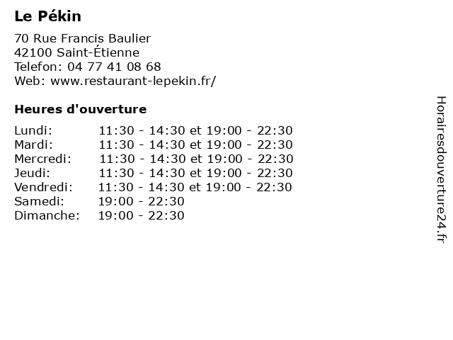 | Mercredi | 11:30-14:30 et 19:00-22:30 |