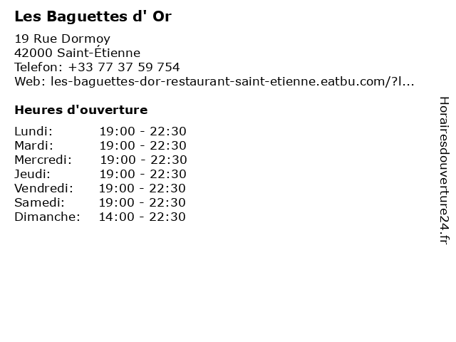 | Samedi | 19:00-22:30 |
