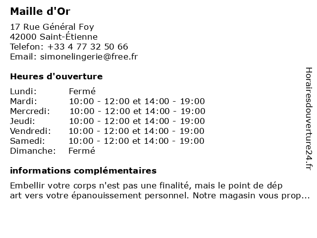 | Mercredi | 10:00-12:00 et 14:00-19:00 |