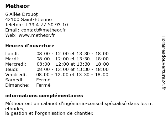 | Lundi | 08:00-12:00 et 13:30-18:00 |