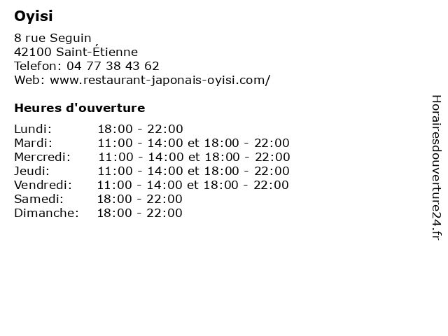 | Vendredi | 11:00-14:00 et 18:00-22:00 |